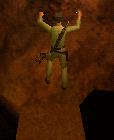 Von der Ecke des Pyramiden-Absatzes aus kannst Du einen Laufsprung zu