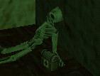 wieder auf den Boden hinunter und folge dem Gang. Dieses Skelett