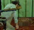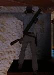 nach vorne an die Kante und nimm das Gewehr heraus. Unten auf dem