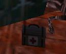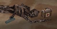 Du das Skelett da unten? Es hat ein Erste-Hilfe-Set bei sich, das es