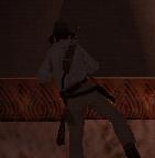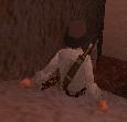zwei Absätze hinunter. Du landest in einem Loch, wo Du rechts