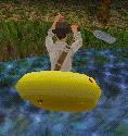 Du genug herumgealbert hast, setzt Du das Floss ins Wasser und fährst