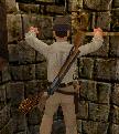 Stein herunter. Indy muss leider auf den Boden des Schachtes, deshalb