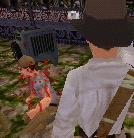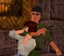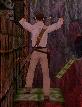 Dich mit der Peitsche durch den Raum mit dem Spuck-Statuen. Du