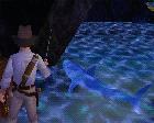kommst dann an einen See. Im See schwimmen ein paar Piranhas herum.