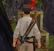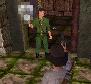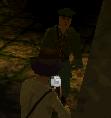 in so einer Art Nebenraum, ist ein Soldat, der ebenfalls eine