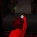 die Maschinenpistole heraus und spring in den Raum hinunter. Rechts,