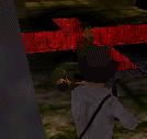 Halt auch die Machete bereit. Ein oder zwei Piranhas harren Deiner im Tunnel. Ziemlich bald siehst Du an der Tunneldecke einen weiteren Gang, der nach oben führt. Schwimm dort hinein. Wenn Du diesen Gang nicht auf Anhieb findest, ist das nicht schlimm. Du kommst dann entweder auf einem anderen Weg dorthin, oder Du kommst wieder im See-Raum hinter den spitzen Steinen heraus.