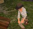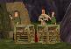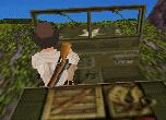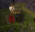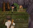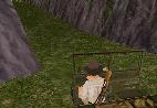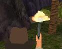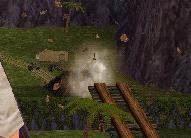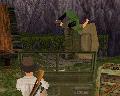 Dann fährst Du weiter, immer geradeaus. Du bist sehr bald wieder in der Anfangs-Höhle. Fahr nach links und dann wieder zum Teich, und von dort an der Hütte und dem Totempfahl vorbei zu dem Ort, wo Du zwei Soldaten flachgewalzt hast. Der Weg zum Teich ist ganz einfach: Immer rechts.