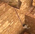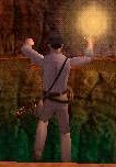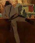 ![]() Geh ein Stück weiter. Bald bemerkt Indy, dass ein Balken für die Peitsche geeignet zu sein scheint. Nimm die Peitsche aus Deinem Gepäck und geh unter den Balken, bis Indy wie in der Abbildung hinauf schaut. |