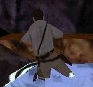 ![]() Der zweite Sprung bringt Indy an seine Grenzen. Lauf auf den Abgrund zu und drücke im allerletzten Moment Alt. So schafft Indy es, auf der anderen Seite sich noch knapp an der Kante festzuhalten. Der Kerl muss wahnsinnig starke Finger haben. Klettere hinauf. |