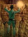 ![]() Bei der Tür vor Dir wartet eine Schlange. Geh so nahe heran, dass Indy auf die Schlange zielt. Dann schiesst Du mit Ctrl, bis das Blut spritzt (tönt brutal, ich weiss). Wenn die Schlange es schafft, Dich zu beissen, benutze das Gegengift, das Du im Gepäck hast. Steck den Revolver mit der Leertaste weg. |