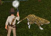 den Revolver und geh in den Raum. Hier haust ein Jaguar. Feuere ein