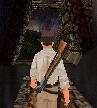 Keine Angst, er tut Dir nichts. Er nimmt Dir nur alles ab, was Du hast, inklusive aller Artefakte. Ausserdem nimmt er Dich mit auf sein Schiff und sperrt Dich dort ein. Im nächsten Level darfst Du von diesem Schiff flüchten.