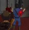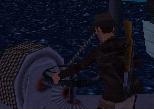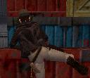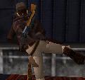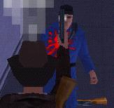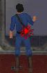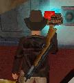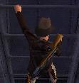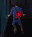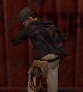 Dich hinter ihn, zieh eine Waffe (Revolver oder Pistole) und schiess