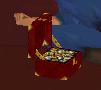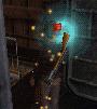 unter den Kristall und schwebe hinauf auf die Kiste.