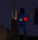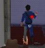 die Tür und geh unsichtbar hinein. Dreh den Muskelprotz ein