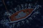 des Schiffes (nicht dort, wo das kleine Boot ist, sondern am anderen
