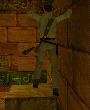 Von der Ecke des Pyramiden-Absatzes aus kannst Du einen Laufsprung zu