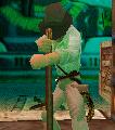 einen Vorwärts-Sprung nach links zu dem Absatz und klettere auf