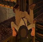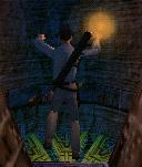 genug gelabert. Spring auf der rechten Seite in die Tiefe hinab. Du