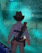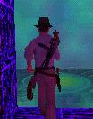 die Pistole. Unten auf dem Boden laufen wieder mal diese Viecher