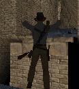 einen Vorwärts-Sprung zu der kaputten Säule vor dem
