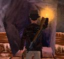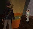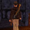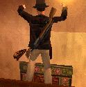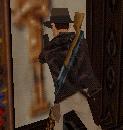 als erstes den Revolver, um den Wolf zu verjagen, der links