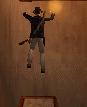 auf das Brett, an dem die bunte Lampe hängt. Dreh Dich um.