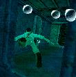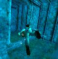ist da noch eine Tür. Geh hinein und spring in das Loch