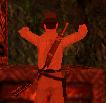 Dich mit der Peitsche durch den Raum mit dem Spuck-Statuen. Du