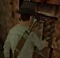 dann ans Festland. Du stehst vor einer Leiter. Klettere hinauf.