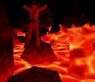 der Mitte des Lava-Sees unter Dir ist eine Insel, auf der Du sicher