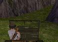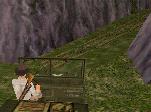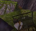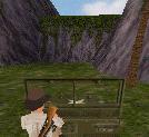 Dann fährst Du weiter, immer geradeaus. Du bist sehr bald wieder in der Anfangs-Höhle. Fahr nach links und dann wieder zum Teich, und von dort an der Hütte und dem Totempfahl vorbei zu dem Ort, wo Du zwei Soldaten flachgewalzt hast. Der Weg zum Teich ist ganz einfach: Immer rechts.