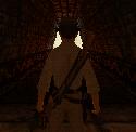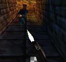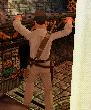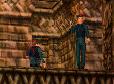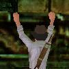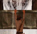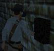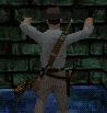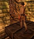 Häng Dich nun wieder an den Rand über dem Durchgang im Loch. Meist weigert sich Indy ohnehin, sich noch mal an der Kante des Durchganges festzuhalten. Deshalb beschreibe ich hier nur dir Variante, wo Indy direkt nach unten springt. Ihm passiert dabei nichts. Wenn er sich also an der unteren Kante festhält, lass Dich gleich hinunter fallen.