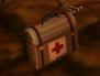 Die links ist offen, also geh hinein und nimm den Verbandskasten.