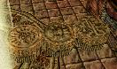 Hier ist nun der wichtigste Teil der Maschine: Die vier zahnradförmigen Steine. Einer davon steht an der Wand, vor einer Platte, die wie eine Tür aussieht. Die anderen drei stehen näher am Loch in der Mitte.